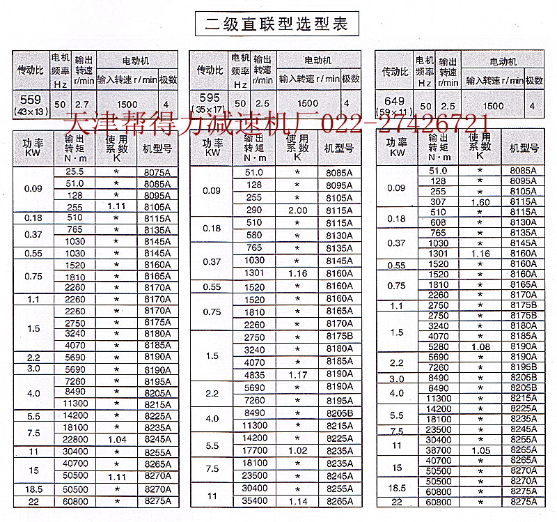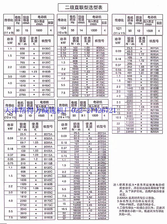 擺線針輪減速機型號-擺線針輪減速機選型-擺線針輪減速機參數(shù)-二級直聯(lián)擺線針輪減速機選型表-天津幫得力減速機有限公司